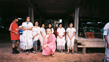 新婦は学校の先生だったので、生徒さんたちが遠い村から来ていました。 結婚式は、カレンの伝統を学ぶ場でもあるのです。 ほとんどが女の子でした。 |