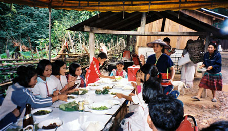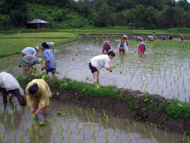 村の儀式に参加した次の日は田植えでした。 子供服の手渡しも終え、カレンの人たちと親交を深めました。 その日は結婚式がありました。 伝統的なもので、たいへん珍しいものでした。 |