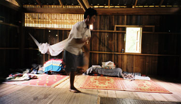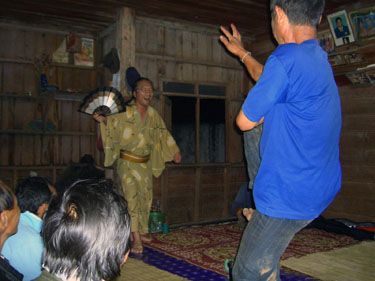 | 結婚式のときに舞う剣舞を、とくべつに見せてもらいました。左が先生、上が弟子です。やはり先生の方が優雅でした。その後結婚式へ。べつの村からお婿さんを迎える儀式です。新婦の家に新郎が婿入りするのが習わしです。 | ||||||||||||||||||||||||||||||